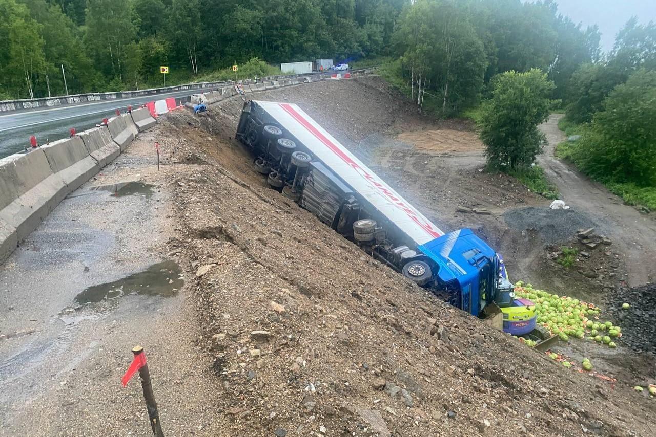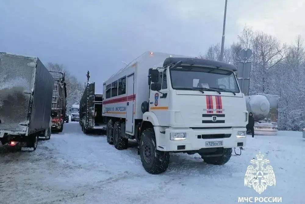 Один уснул, второй сломался. Полиция показала, как ночью растаскивали пробку на федеральной трассе в ПриангарьеГрузовики стояли в заторе около 3 суток