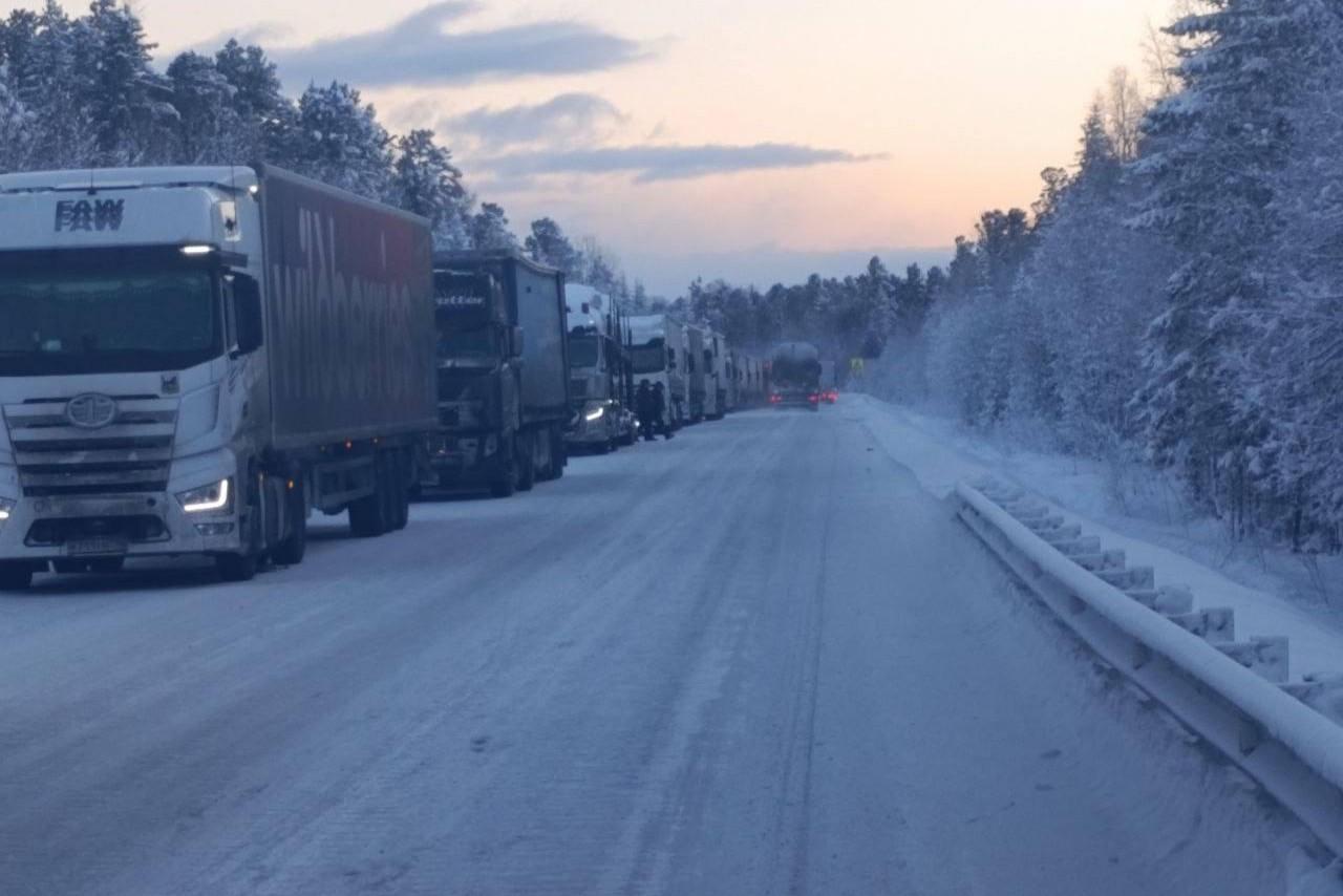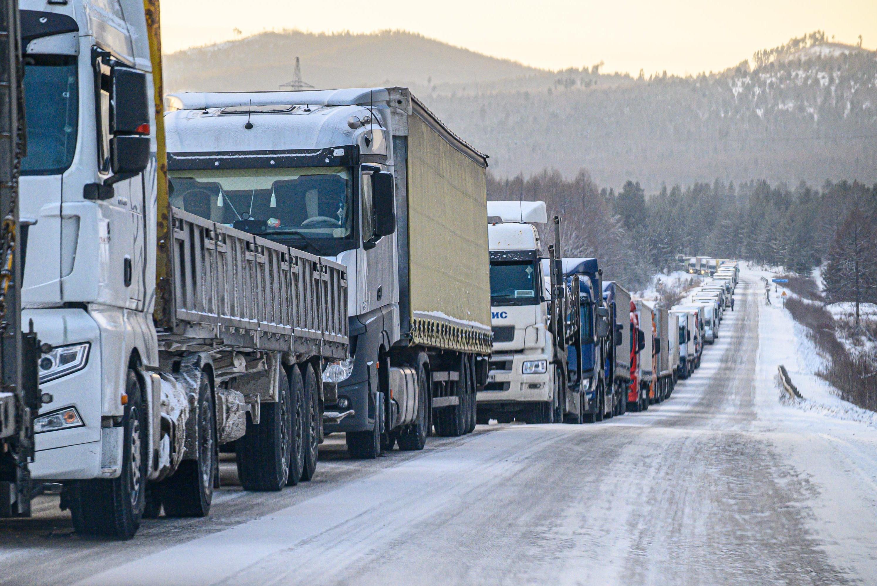 Полиция попросила водителей не ездить по федеральной трассе в Слюдянском районе — там застряли сотни фурК счастью, местами колонна продвигается