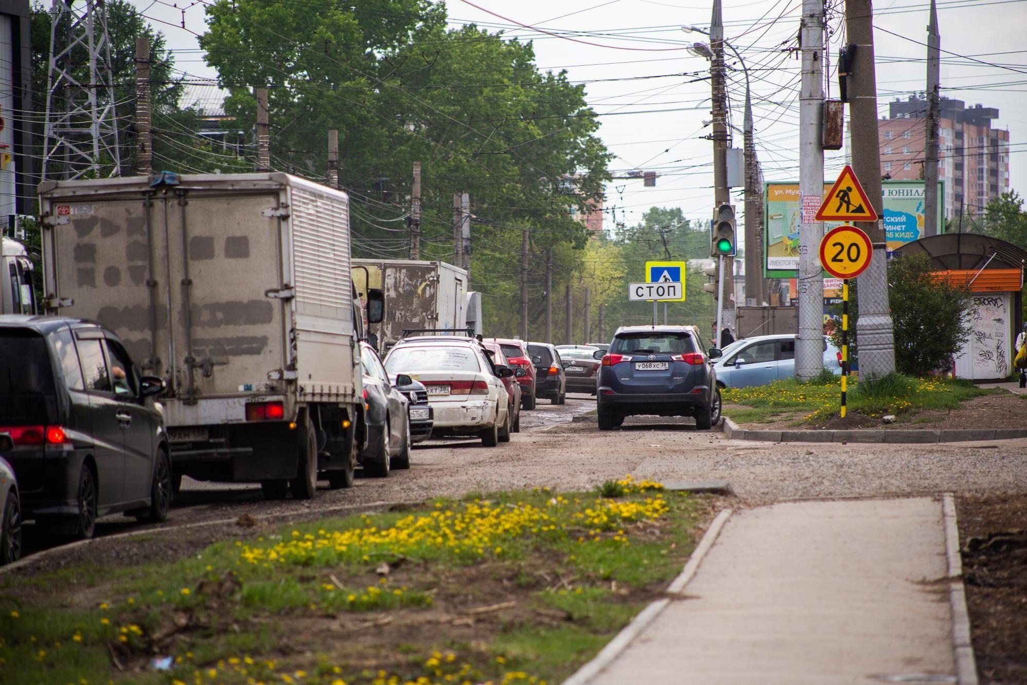 На мост не попадешь. В Иркутске на Чкалова образовалась пробка на полкилометраНа дороге вместо лежачих полицейских остались глубокие выемки: они и создают трудности водителям
